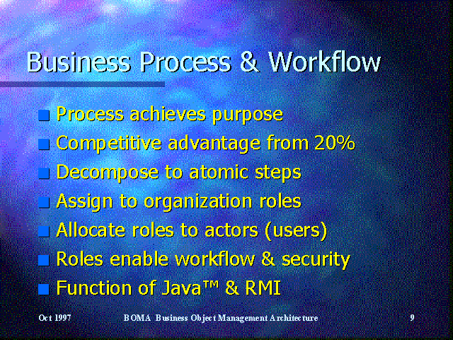 Java™ enables workflow between users across the global network through remote method invocation (RMI), which allows requests to be made by an object in one location to an object in another location.