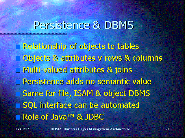 The choice of persistence mechanism between a stream file, ISAM table, relational database or object database is a technical decision, not a business decision.